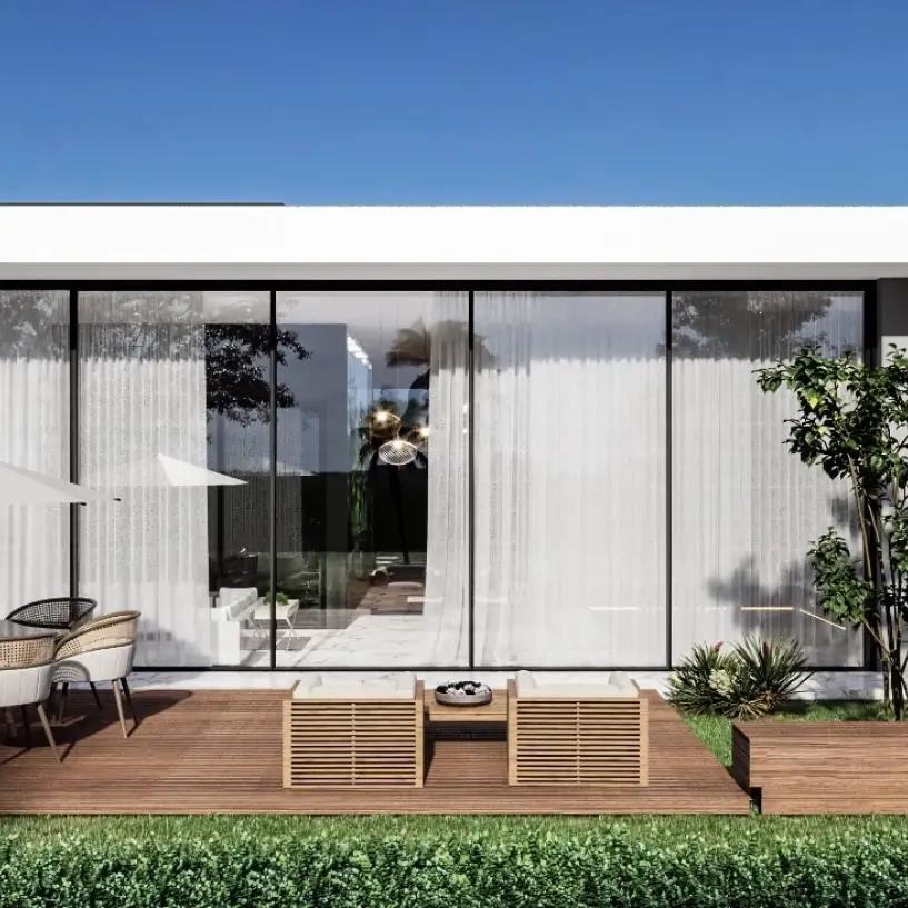 Com um design contemporâneo, a fachada transmite imponência e identidade. Possui uma grande variedade de texturas e cores e um jogo harmônico das formas e volumes da residência. O projeto se desdobra em dois pavimentos e, por premissa do cliente, os ambientes são todos integrados e conectados com a área externa da residência, onde foi projetado um lounge externo. Já o projeto de interiores aposta nos detalhes e ousa na escolha dos móveis, luminárias diferenciadas e peças de design. Dá destaque nos ambientes utilizando a forma de iluminação indireta feita pelas fitas de led, criando assim um ambiente mais aconchegante aos residentes.